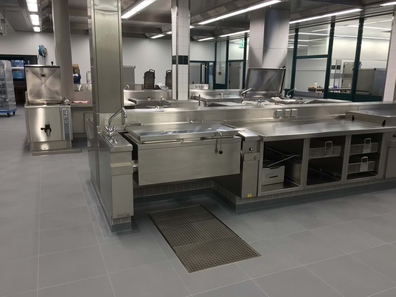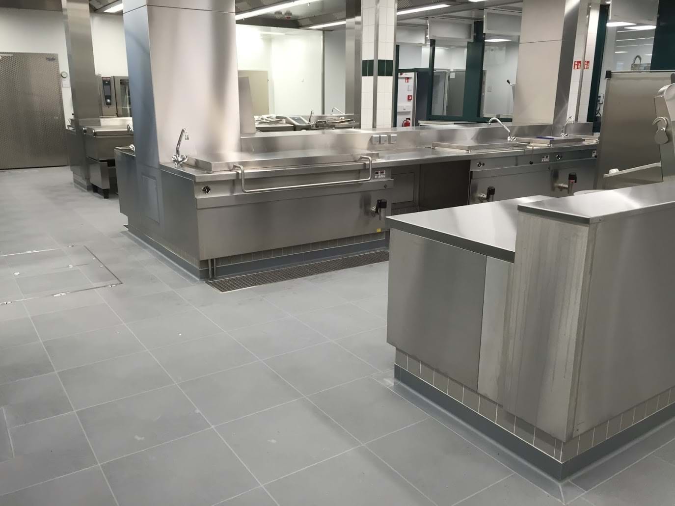 An Böden in Großküchen und in der Gastronomie werden neben den üblichen Anforderungen zwei weitere wesentliche Anforderungen mit großer Wichtigkeit gestellt, nämlich die Rutschsicherheit des Bodenbelags sowie die Abdichtung der Bodenfläche, um Keimen und Bakterien keine Unterschlupf-Möglichkeit zu bieten.