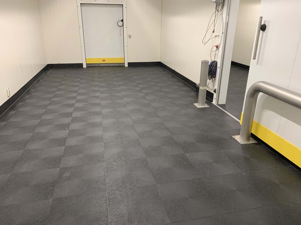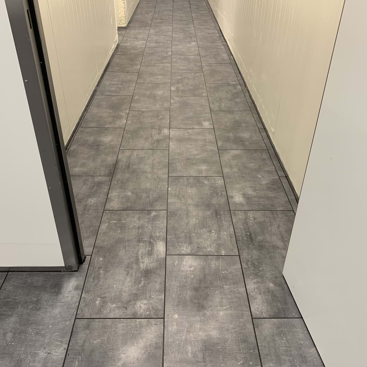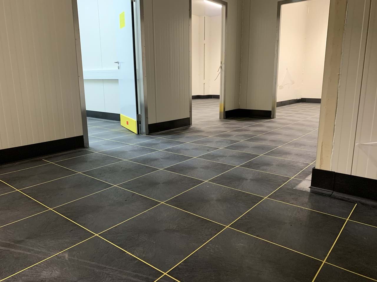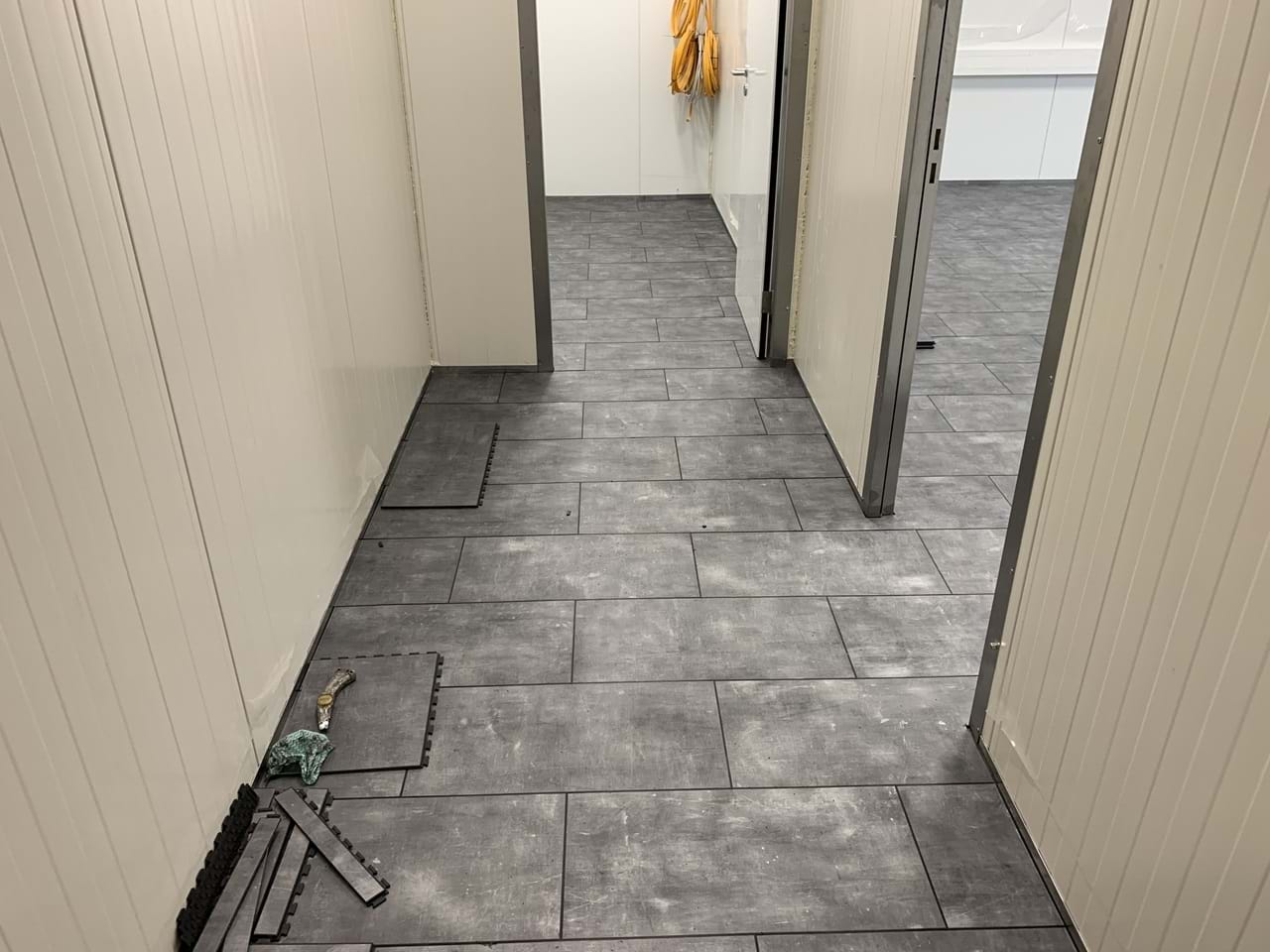 Es wurden ca. 2000 qm Stufenfalz-Bodenbelag 6 mm verlegt und ca. 350 qm Designboden in den Personalbereichen.