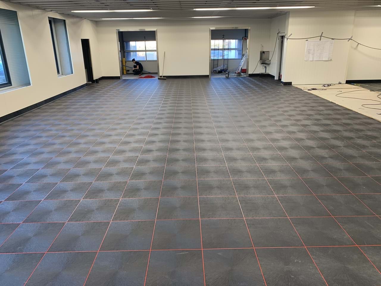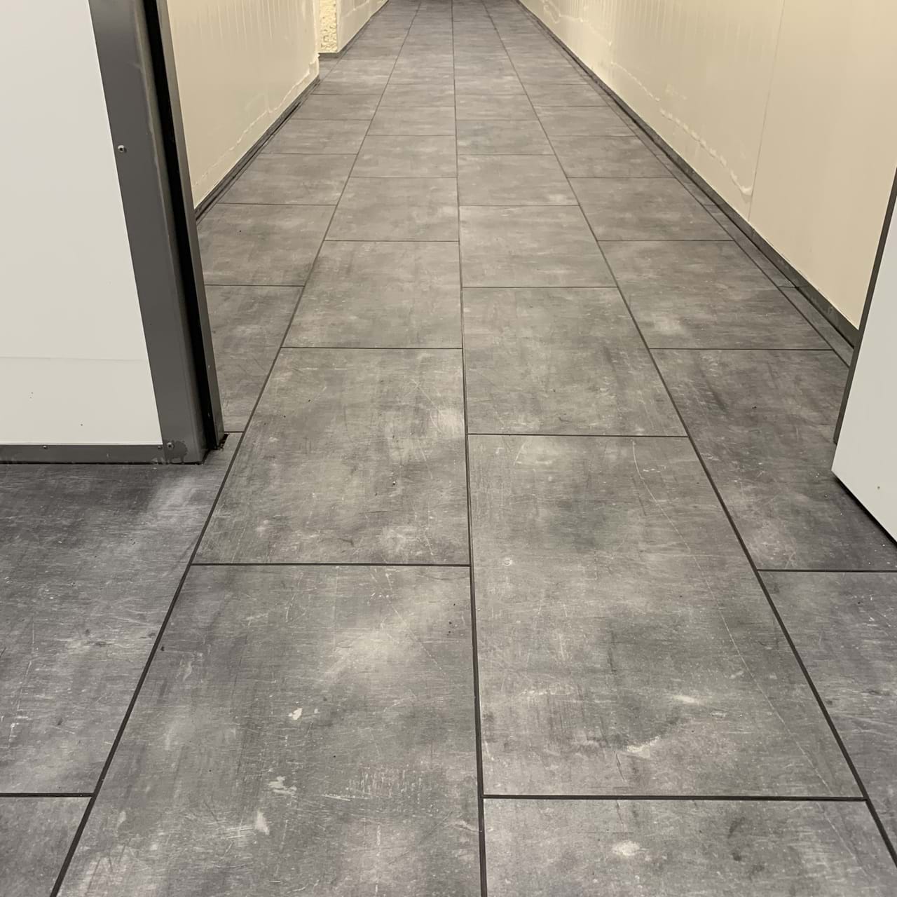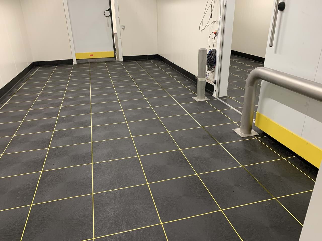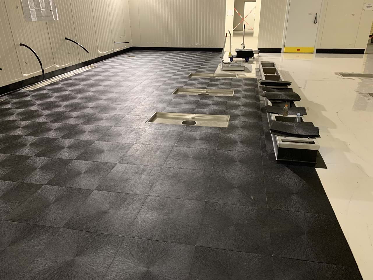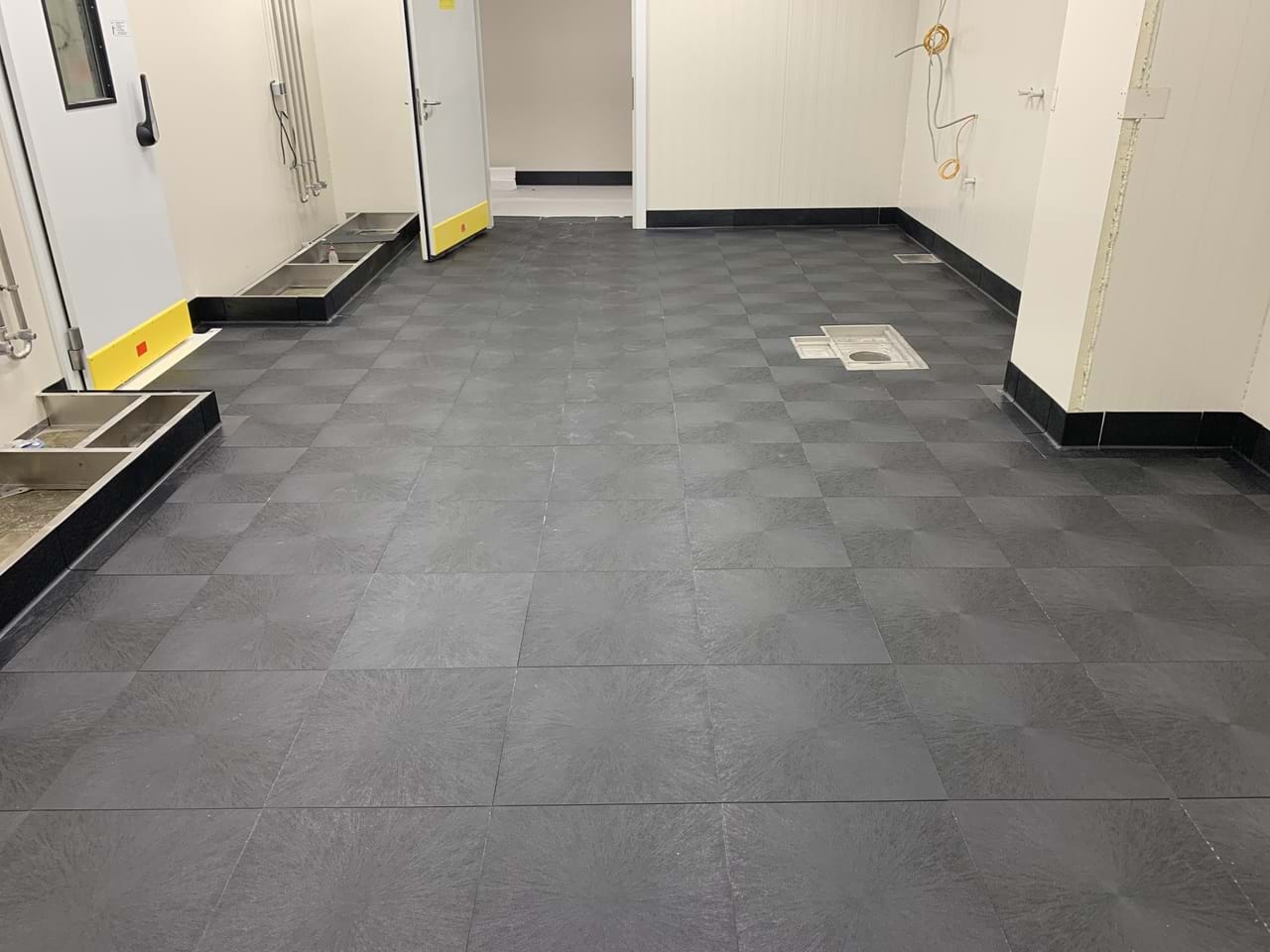Es wurden ca. 2000 qm Stufenfalz-Bodenbelag 6 mm verlegt und ca. 350 qm Designboden in den Personalbereichen.