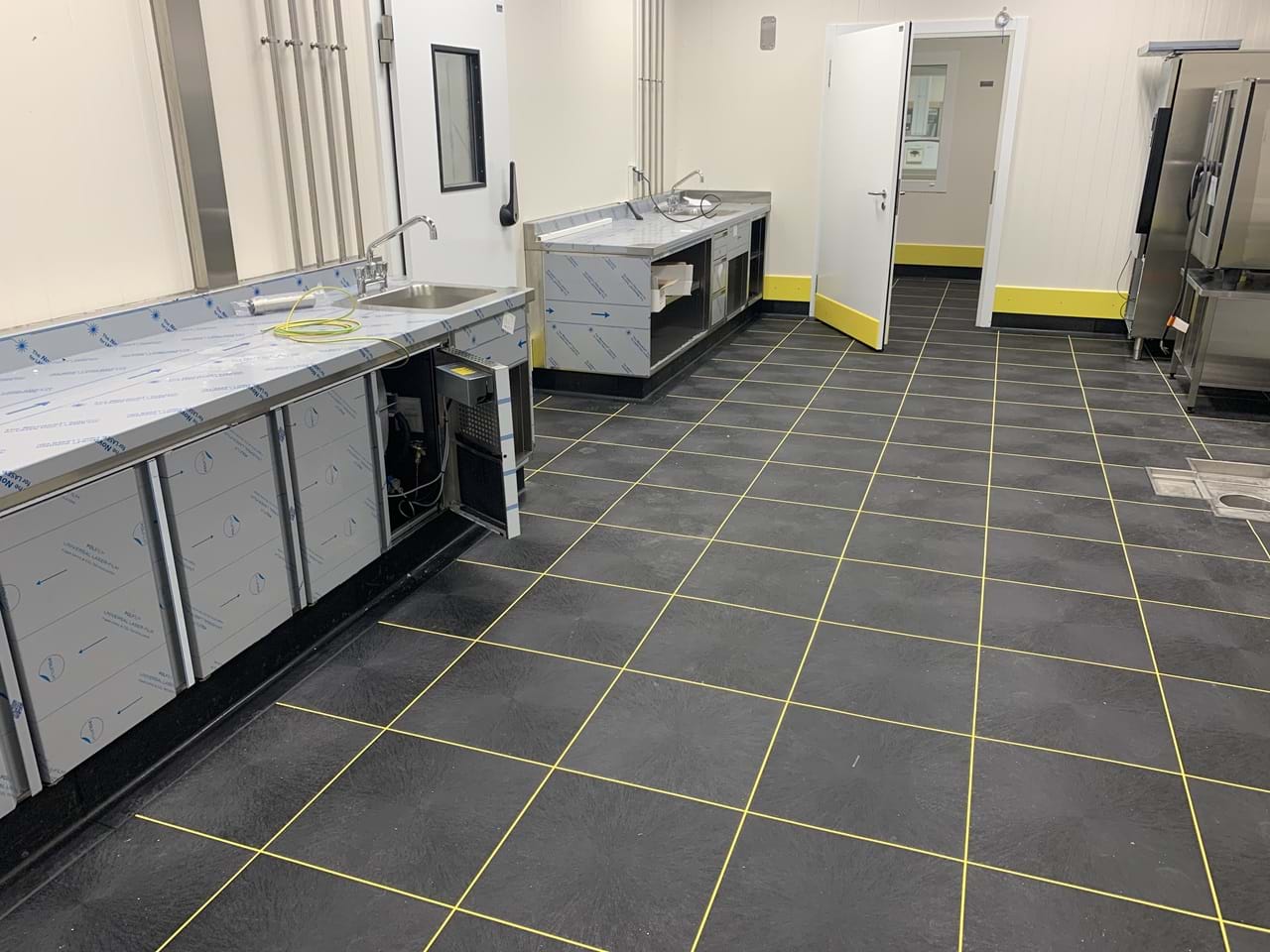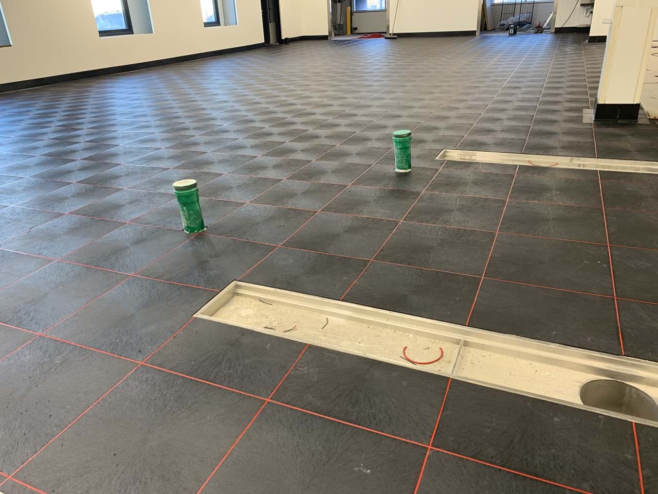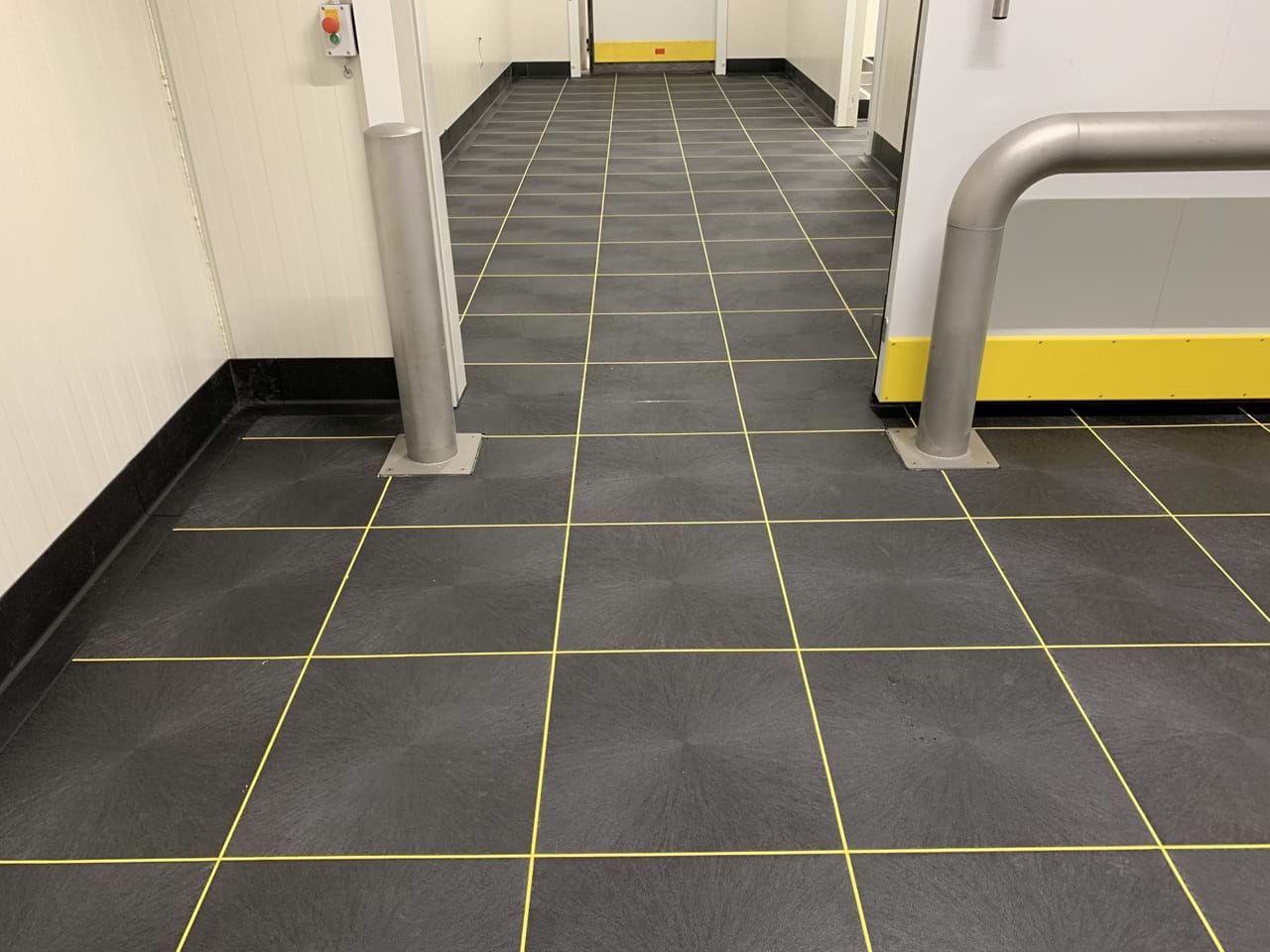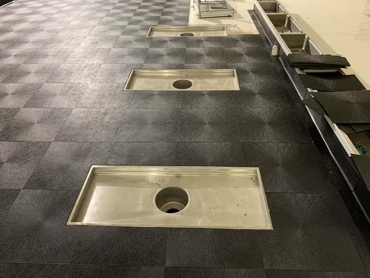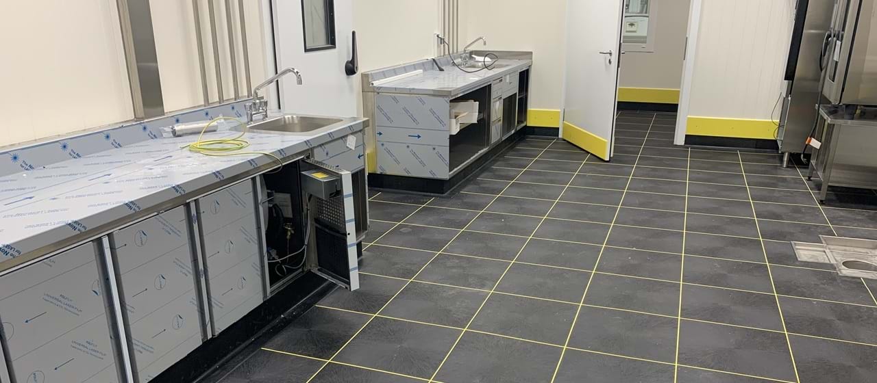 Es wurden ca. 2000 qm Stufenfalz-Bodenbelag 6 mm verlegt und ca. 350 qm Designboden in den Personalbereichen.