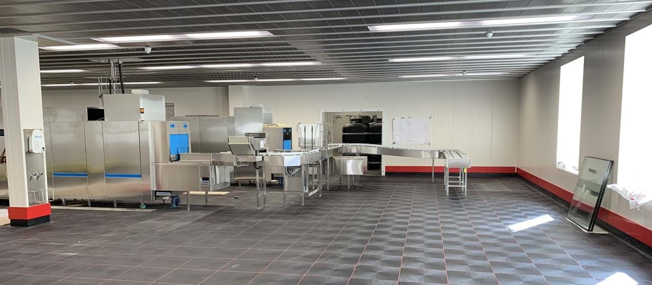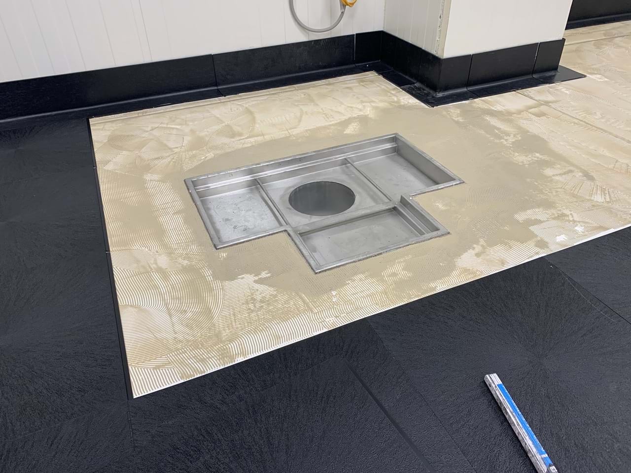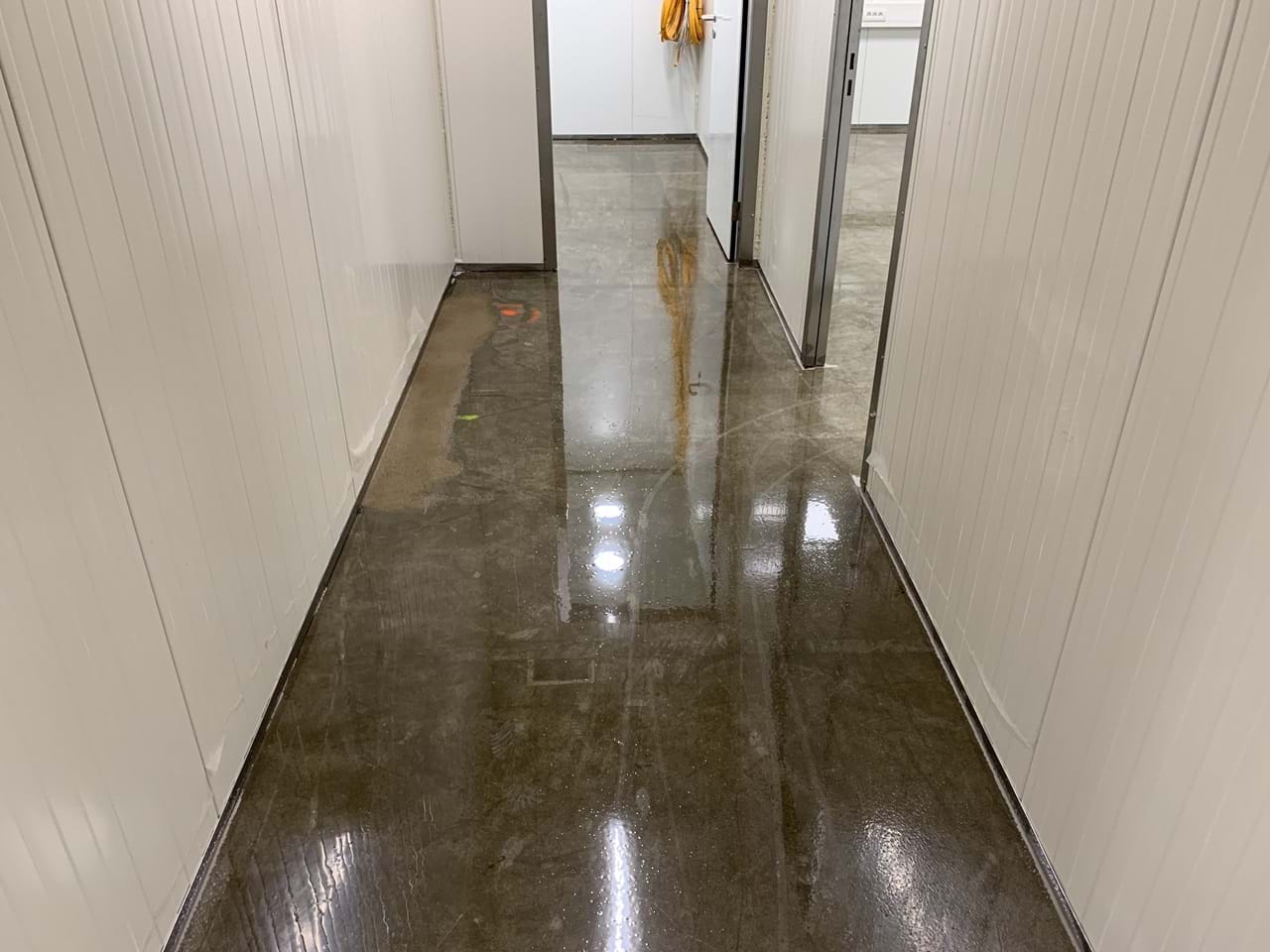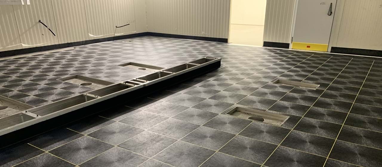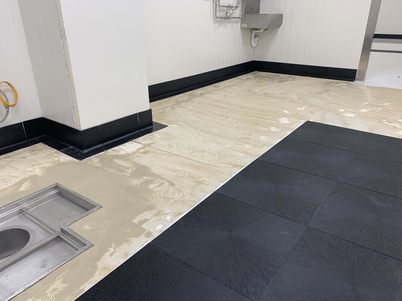 Es wurden ca. 2000 qm Stufenfalz-Bodenbelag 6 mm verlegt und ca. 350 qm Designboden in den Personalbereichen.