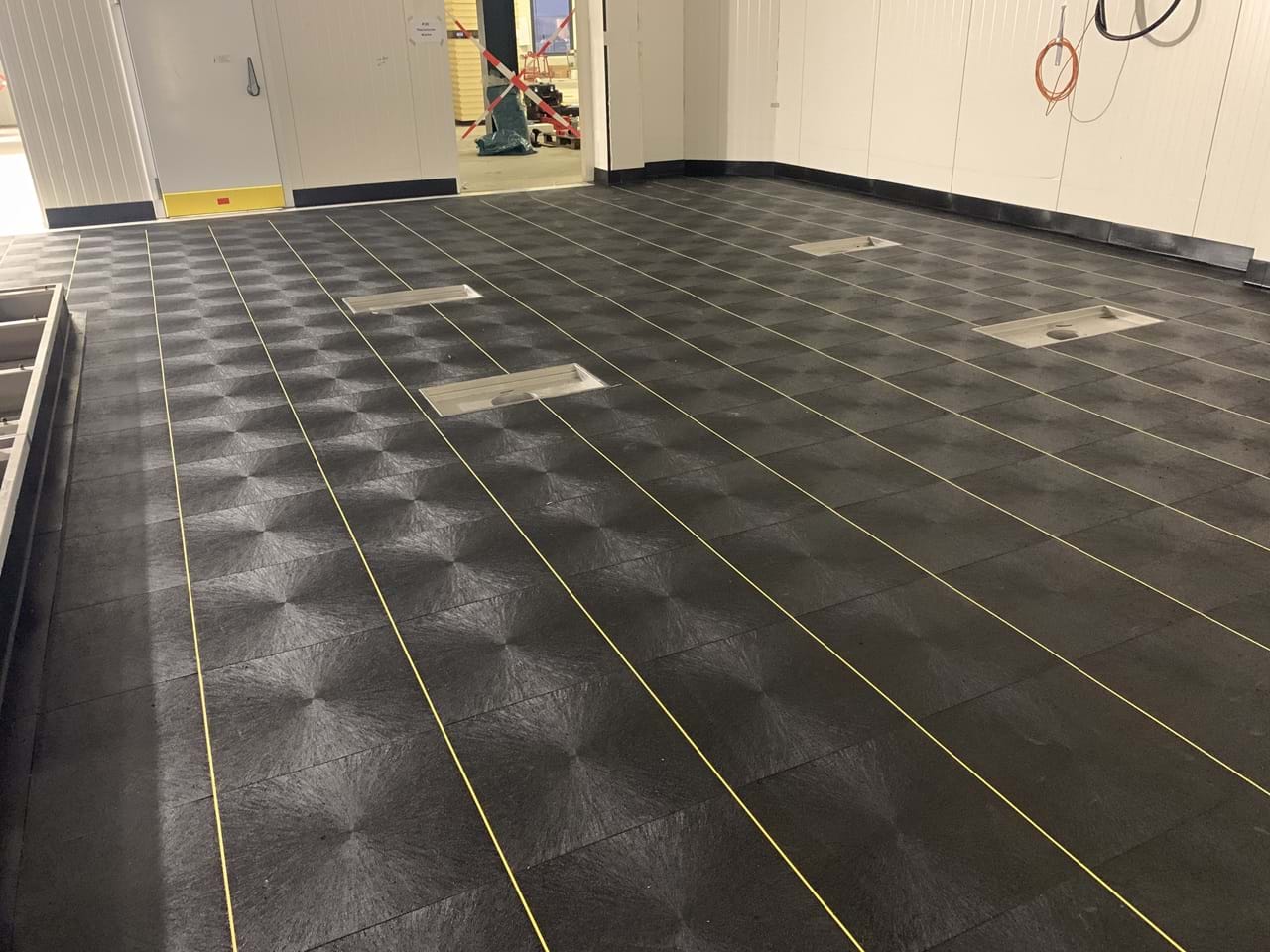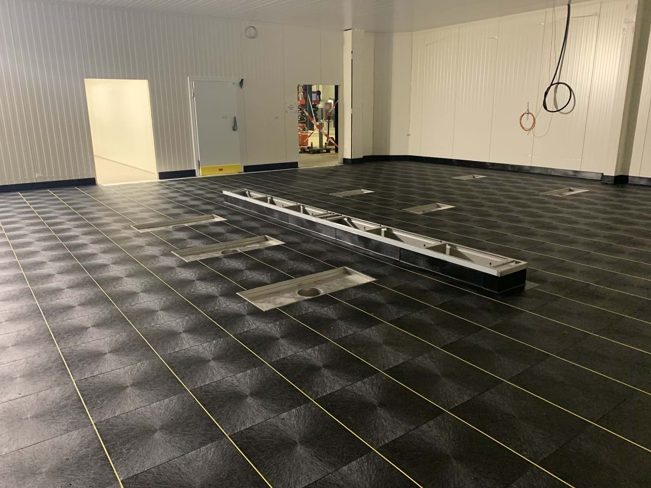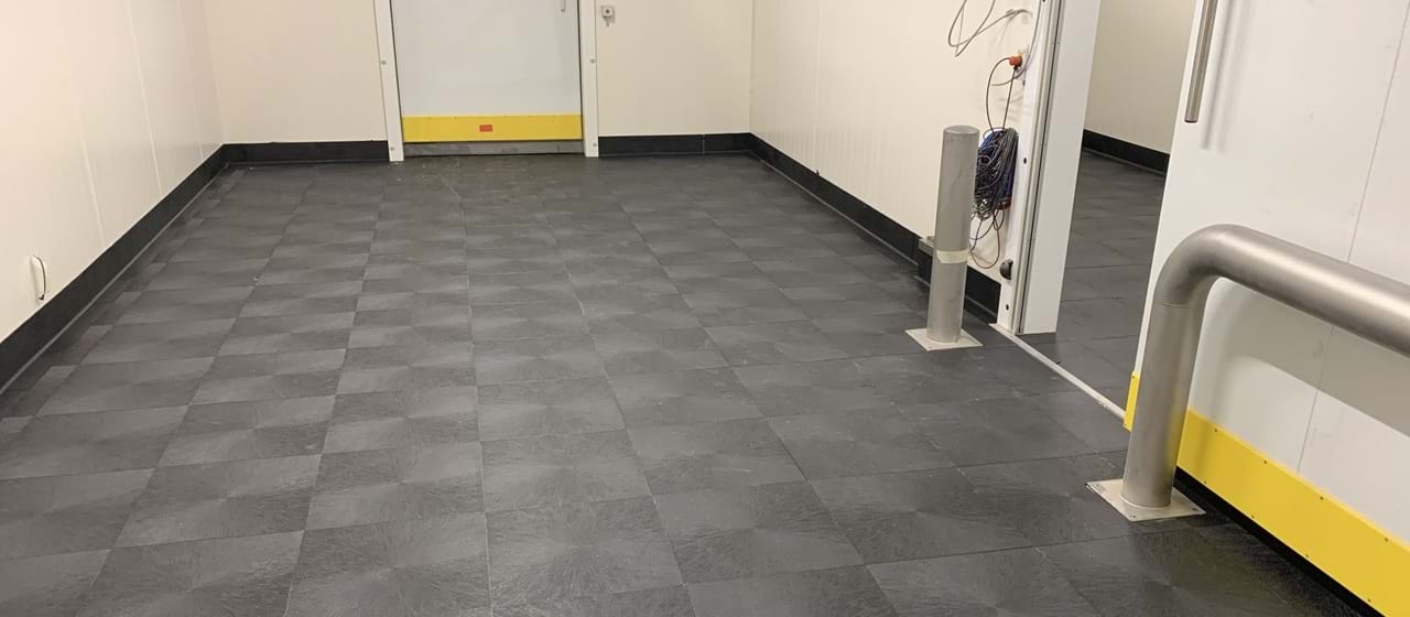 Der Boden erfüllt dabei die maßgeblichen Grundvoraussetzungen. Der hier verwendete Bodenbelag (Stufenfalz, 6 mm, R11) hat folgende Eigenschaften: