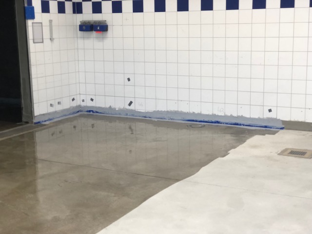 Der Unterboden wurde mit Epoxydharz und anschließend mit einer Verbundabdichtung vorbereitet und abgedichtet.