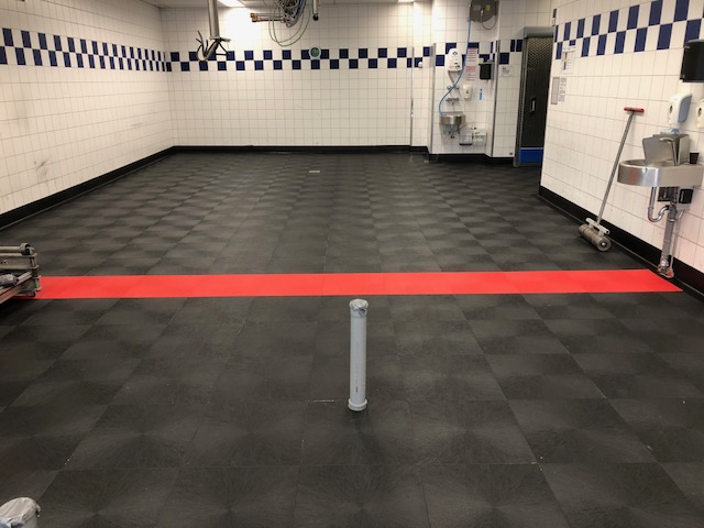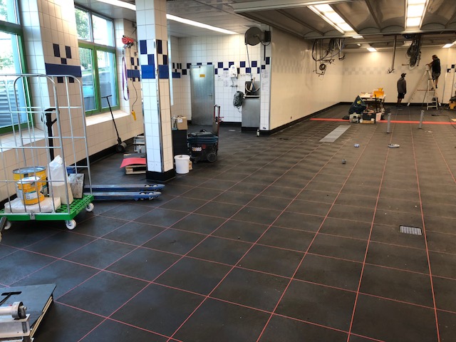 Zum Abschluss wurden die Bodenplatten mit 2K PU Kleber vollflächig verklebt und thermisch verschweißt.