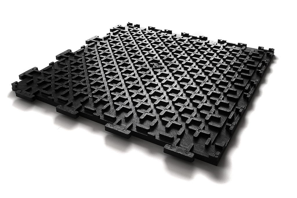 • besonders geeignet für verölte, verschmutzte oder Restfeuchte aufweisende Bodenbereiche (durch nicht vollflächig aufliegende, mit Stegen versehene Unterseite)